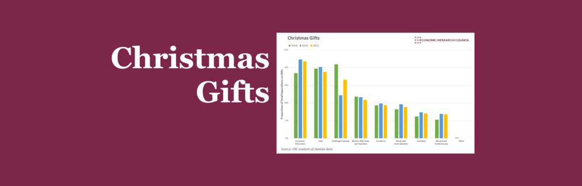 The effect of the pandemic on gift expenditure can also be seen in books/entertainment and Alcohol/confectionary. The realisation that significant amounts of time would be spent at home encouraged greater spending on goods that enabled people to enjoy their time at home.