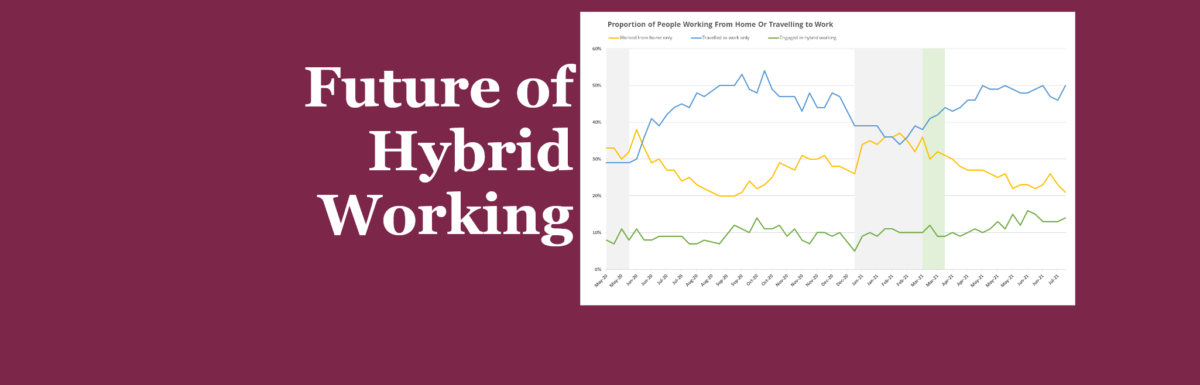 The proportion of people working exclusively from home has been correlated with school closures and lockdown restrictions. Until recently, hybrid working has not shown a similar trend. The experience of working from home is now starting to alter expectations of hybrid working. This certainly provides economic challenges, though it can also bring about opportunities.