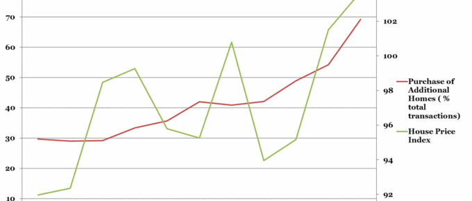 It would be unremarkable were house prices increasing as a function of total home purchases,