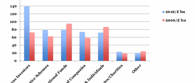 Overseas investors saw the largest increase in UK commercial property ownership in the decade to 2016…
