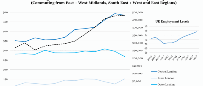 Average London House Price vs London Commuters by Workplace